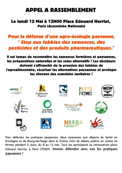 Appel à rassemblement - Pour la défense d’une agro-écologie paysanne. "Stop aux lobbies des semences, des pesticides et des produits pharmaceutiques."