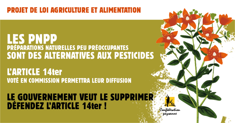 Surtout, nous leur demandons de ne pas rogner sur les quelques avancées déjà présentes dans le titre II du projet de loi : l'article 14 ter sur l'autorisation de fabriquer et d'utiliser des préparations naturelles peu préoccupantes (PNPP*) qui ouvrirait l'accès à des alternatives ambitieuses aux pesticides ; l'article 13 quinquies surl'expérimentation d'abattoirs mobiles, solution nécessaire à la réduction des temps de transport des animaux et au développement des circuits de proximité