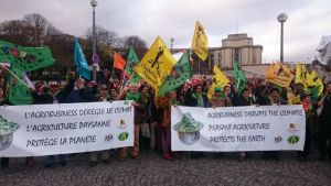 Alors que le mot « agriculture » est absent du texte de l'accord de Paris, les terres agricoles y sont présentées comme un outil, un « puits de carbone » pour compenser les émissions de gaz à effet de serre. La production d'alimentation passerait donc au second plan, au profit des promoteurs de ...