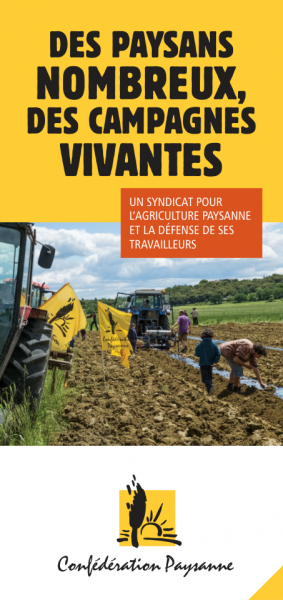 La Confédération paysanne est, depuis 1987, un acteur majeur du syndicalisme agricole français qui porte des valeurs de solidarité et de partage. Le projet pour une agriculture paysanne qu'elle défend avec constance depuis sa création est cohérent et global. Il intègre pleinement les dimensions sociales, agronomiques et environnementales dans la production agricole. C'est une alternative réaliste à un modèle d'agriculture industrielle qui élimine trop de paysans et de structures agricoles diversifiées.