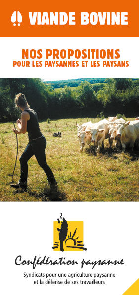 - Soutenir une politique d'engraissement intelligente (réforme de la PAC* catastrophique sur ce point : exclusion des génisses, plafond trop haut de l'aide aux bovins allaitants…) : l'engraissement des génisses et des bœufs et l'incitation à une bonne finition des vaches de réforme sont entre autres à privilégier par rapport à une production de jeunes bovins, exclusivement destinés à l'export.