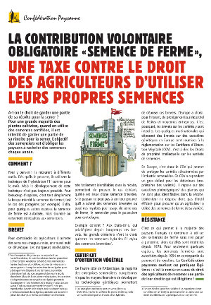 ■ Reconnaissance du droit des paysans de ressemer et d'échanger librement les grains et plants produits dans leur ferme. Ce droit est inaliénable et rend impossible tout contrat ou toute proposition de politique publique le remettant en cause comme la subordination des aides PAC* à l'utilisation de semences certifiées.
