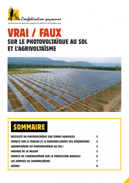 Alors que les gisements photovoltaïques sur les toitures et les espaces artificialisés sont largement suffisants pour répondre à la demande d'électricité renouvelable, la Confédération paysanne récuse la notion d'agrivoltaïsme et exige l'interdiction des centrales photovoltaïques sur toutes les terres agricoles, naturelles et forestières.